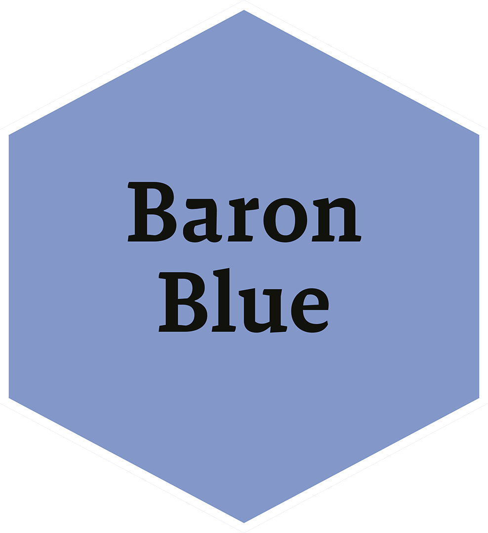 The Warpaints Fanatic: Baron Blue is a light purplish blue that works well as a light base tone or highlight colour. It’s the second-lightest tone from the “Strong Pale Blues” Flexible Colour Triad and its Practical Colour Name is “Light Purplish Blue”.