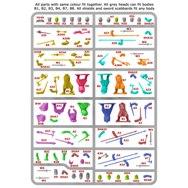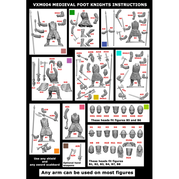 Earlier styles can be used together with later styles as equipment would last generations as it was passed from Father to Son. These can all be interchangeable with our mounted Knights set.