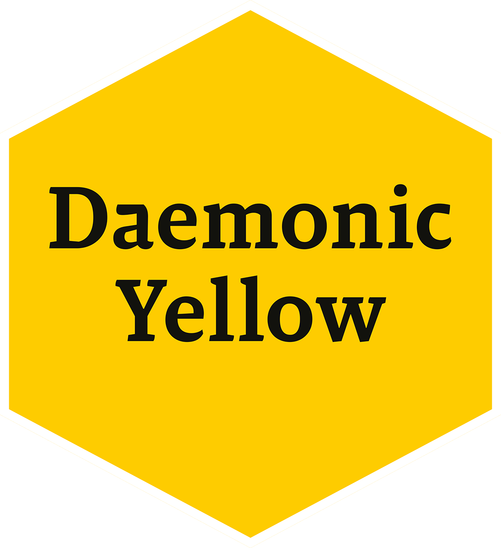 The Warpaints Fanatic: Daemonic Yellow is a vivid yellow that matches the Warpaint Air and Colour Primer of the same name. It’s one of the two middles tones from the “Yellows” Flexible Colour Triad and its Practical Colour Name is “Vivid Yellow”.